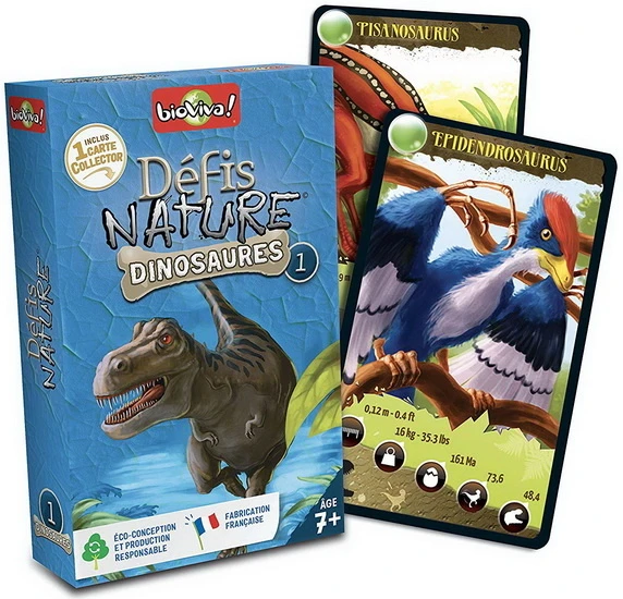 Défis Nature vous emmène à la rencontre des dinosaures les plus surprenants. Découvrez les espèces disparues, puis pariez sur les points forts de vos animaux pour collecter toutes les cartes du jeu et remporter la partie.