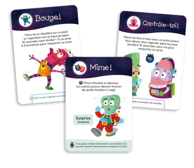 Fais tenir des cartes en équilibre sur ton corps! Mémorise les éléments sur la carte! Regarde un autre joueur dans les yeux sans rire! Dis le virelangue sans te tromper!