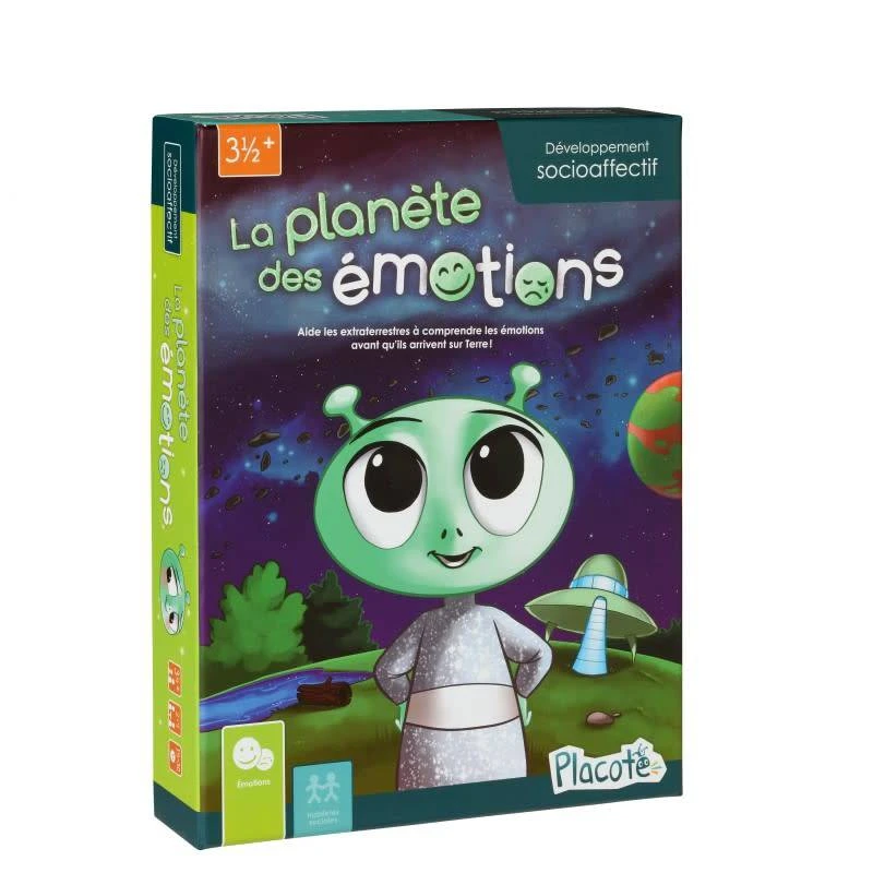 La planète des émotions est conçu pour aider les enfants de 3 ans et demi à 7 ans et demi à comprendre les émotions ressenties par plusieurs personnes dans une grande variété de situations, et ainsi favoriser le développement de l’empathie. Ce jeu montre aussi qu’une même situation peut provoquer différentes émotions selon les personnes.