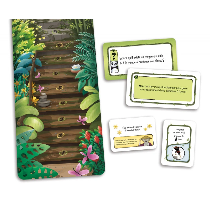 Réponds aux questions et réalise des défis zen pour faire avancer Zenda jusqu’au temple. Mais attention, tu dois arriver au bout du parcours avant le ninja, qui représente le stress !