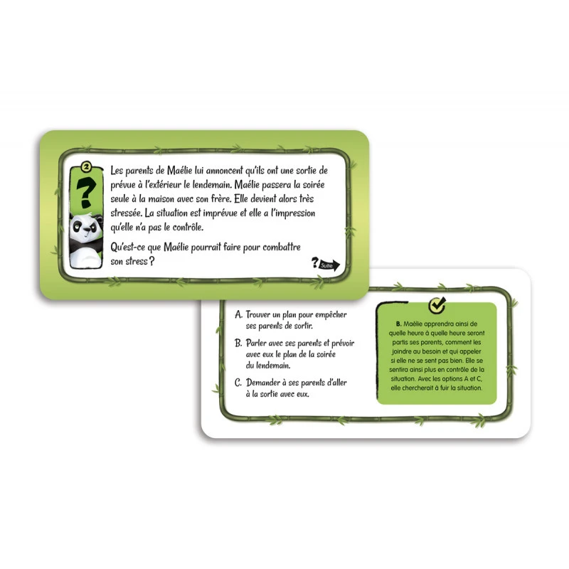 Zenda : le maître du stress est conçu pour aider les enfants de 7 à 14 ans à développer leur compréhension du stress et leur habileté à le gérer dans différentes situations du quotidien. Le jeu les amène aussi à prendre conscience que le stress est une réaction saine et utile qui est différente pour chaque personne. Les deux niveaux de difficulté en font un jeu évolutif qui plaira à toute la famille !