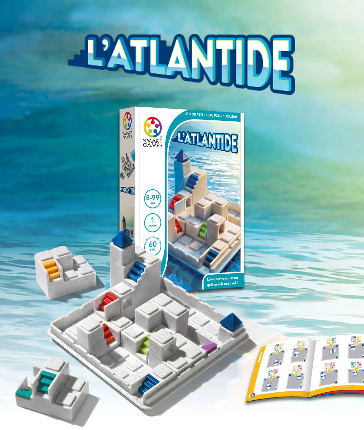 Saurez-vous quitter la mythique Atlantide avant que les flots ne l’aient submergĂ©? L’Atlantide est un jeu de rĂ©flexion pour toute la famille dont le but est de trouver l’unique chemin qui vous mènera de la Haute Tour vert le port en plaçant judicieusement les diffĂ©rents quartiers de la ville, reprĂ©sentĂ©s par les escaliers de couleur. En vous faufilant Ă travers les passerelles, sous les porches, les escaliers et les rues, parviendrez-vous Ă rejoindre une embarcation Ă temps?.