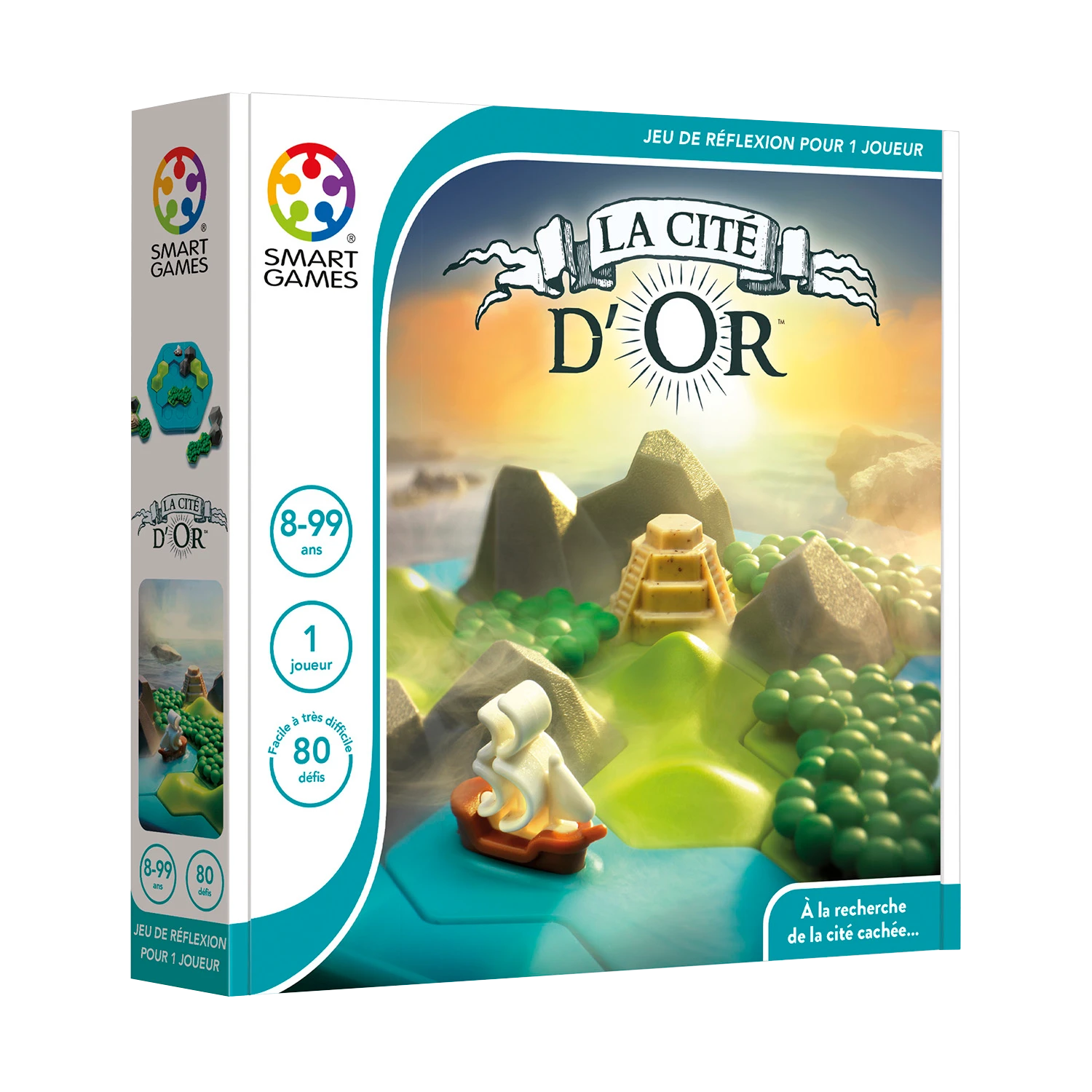 En explorant le nouveau continent trouvez l’unique emplacement de la tuile avec la pyramide. À l’aide des indices donnés par la carte sur la nature des régions sauvages à franchir, saurez-vous assembler les différents types de terrains en manipulant les quatre tuiles articulables afin d’atteindre la mythique Cité d’Or ?