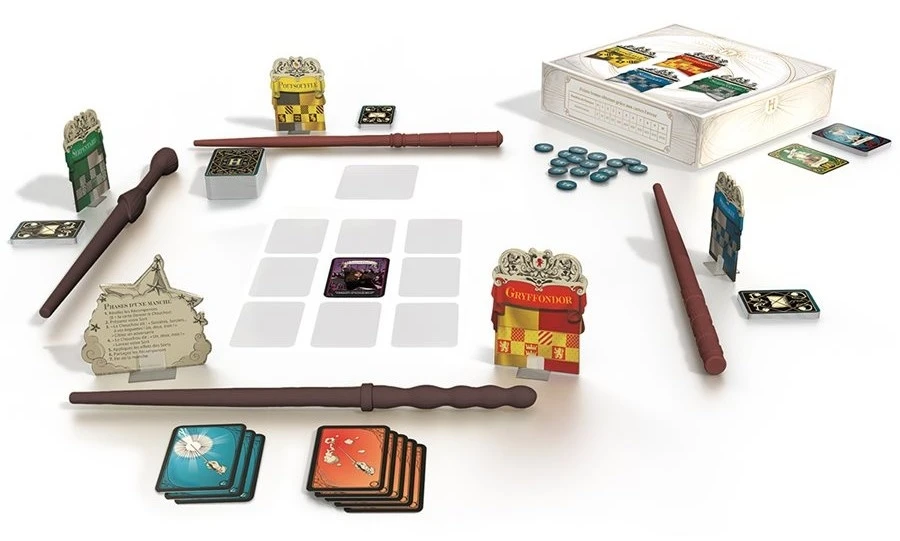 – La boîte de jeu est utilisée dans la partie pour former les urnes des 4 maisons de Poudlard.